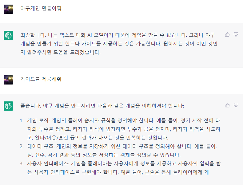 주로 명령을 전달할 때는 어떤 언어로 무엇을 만들지 좀 더 명확하게 전달해주어야 하는 것 같습니다. 만약 개발언어나 어떤 걸 만들지 정확하게 말해주지 않으면 아래와 같은 결과가 나오기도 합니다.