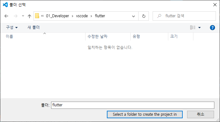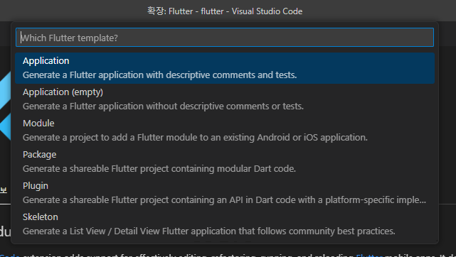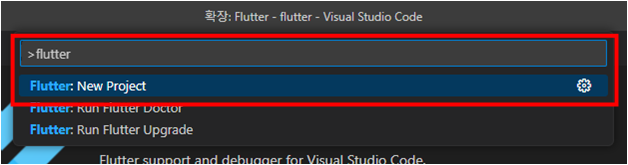 # 명령 팔레트 (Ctrl + Shift + P) - 검색창 "flutter" 입력 - "Flutter: New Project" 클릭