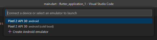 # 명령 팔레트 (Ctrl + Shift + P) - 검색창 "flutter" 입력 - "Flutter: Launch Emulator" 클릭
