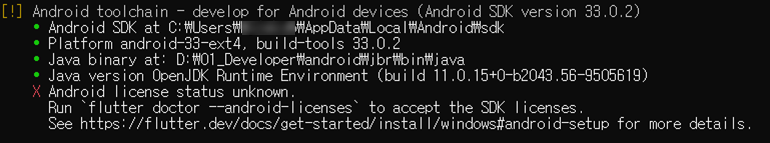 [Flutter] Android toolchain 오류 (0) | 2023.03.04 |