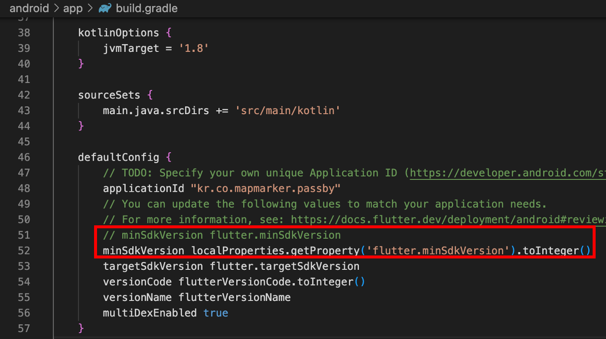 flutter.minSdkVersion=버전코드
