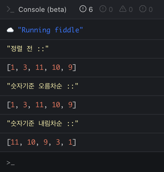 단순히 아래와 같이 적용해주면 오름차순으로 정렬됩니다. (단, 정수일 지라도 아스키코드 기준으로 정렬되기 때문에 숫자 크기대로 정렬되지 않습니다.)