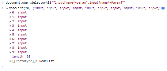 document.querySelectorAll("input[name*=param],input[name*=Param]")