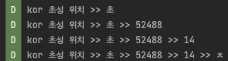 Log.d("FromActivity", "kor 초성 위치 >> $first >> $unicode >> $index >> ${result}")