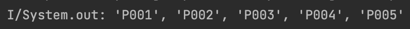 val params = arrayListOf("P001", "P002", "P003", "P004", "P005")