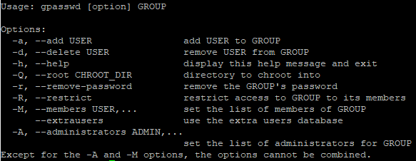 | -A | --administrators ADMIN, ... | 그룹의 그룹 관리자 설정 |