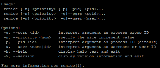 -p --pid <id> 우선 순위를 변경할 Process의 ID값을 지정