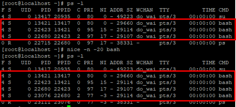 # bash 우선순위를 -20만큼 선 순위로 변경