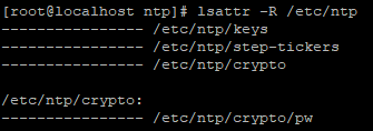▶ /etc/ntp 내 파일과 디렉토리 뿐만 /etc/ntp 디렉토리 내 재귀적으로(디렉토리 안의 디렉토리...) 파일과 디렉토리 속성 확인