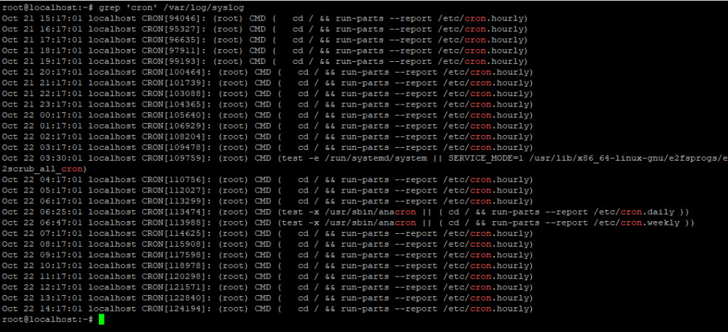 ▶︎ /var/log/syslog에서 cron이 실행된 적 있는지 체크