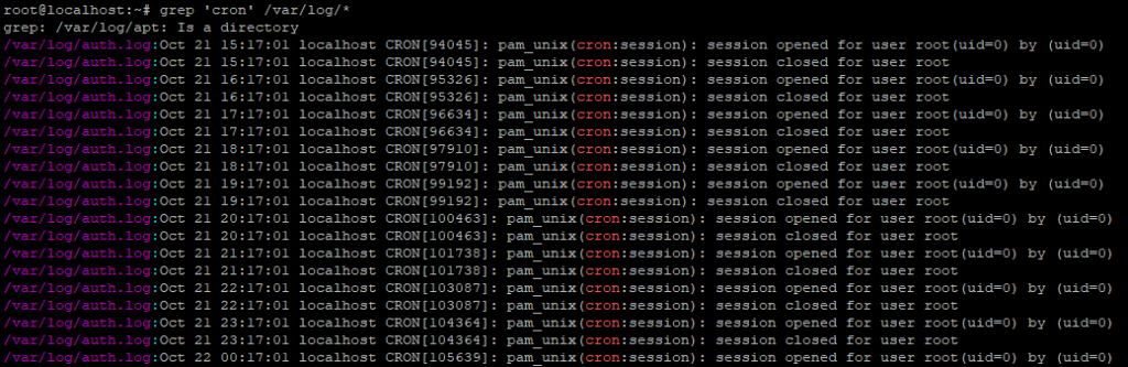 # /var/log 내 *.log 파일들에서 cron 문자열 탐색