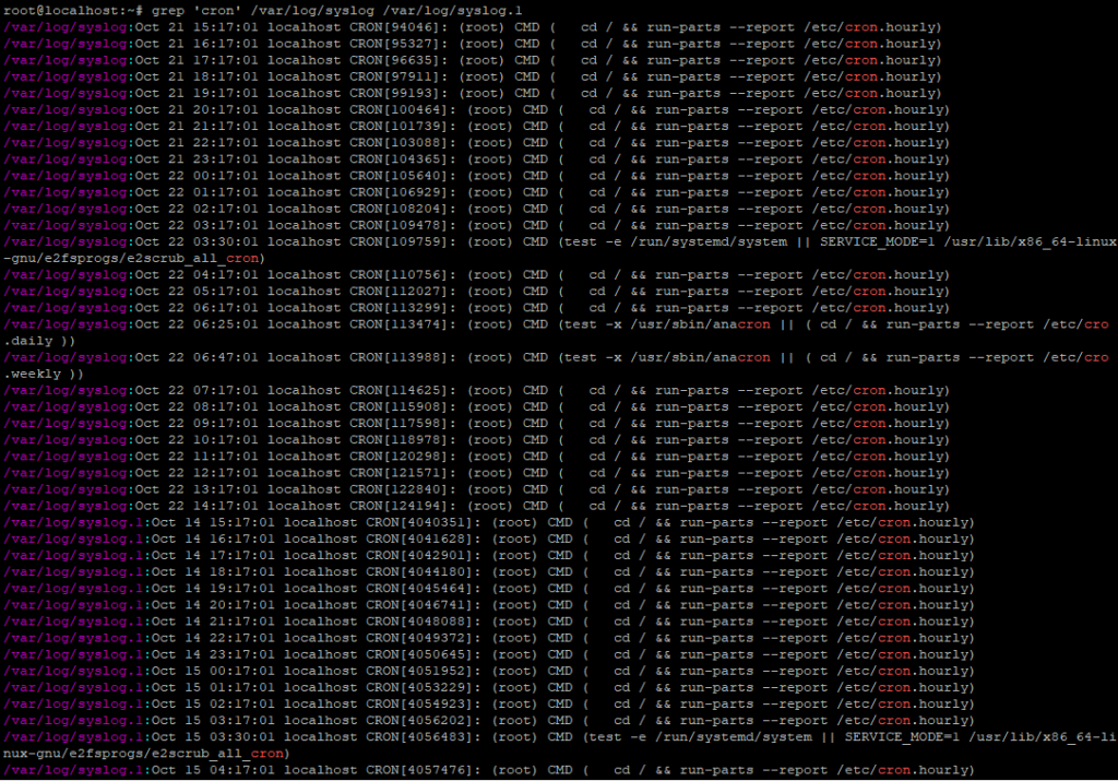$> grep 'cron' /var/log/syslog /var/log/syslog.1