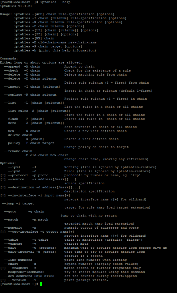 | -N | --new | 새로운 사용자 정의 체인을 생성합니다. |