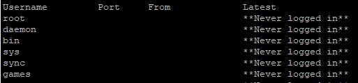 | -u | --user LOGIN | 지정한 사용자 (LOGIN)의 lastlog 정보만 출력 |