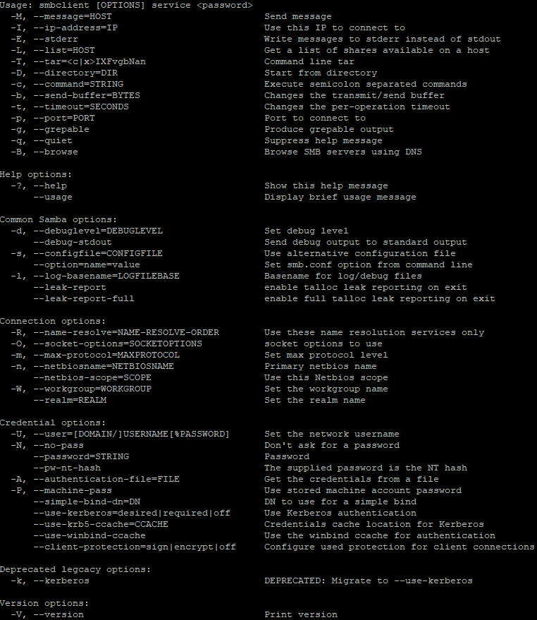 | -L | --list=HOST | 접속하려는 삼바 서버의 공유 디렉토리 목록 조회 |