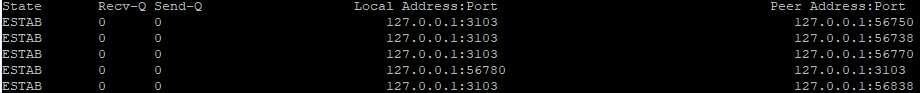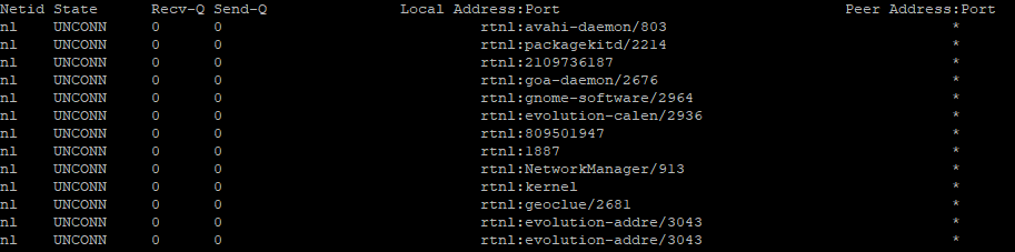 | Local Address:Port | 소켓에 연결된 경로명 또는 로컬 호스트명(IP 주소) 및 포트 번호 |