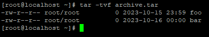 ▶︎ foo와 bar를 archive.tar로 묶어줍니다.