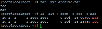 # foo와 bar를 묶은 archive.tar 아카이브 생성
