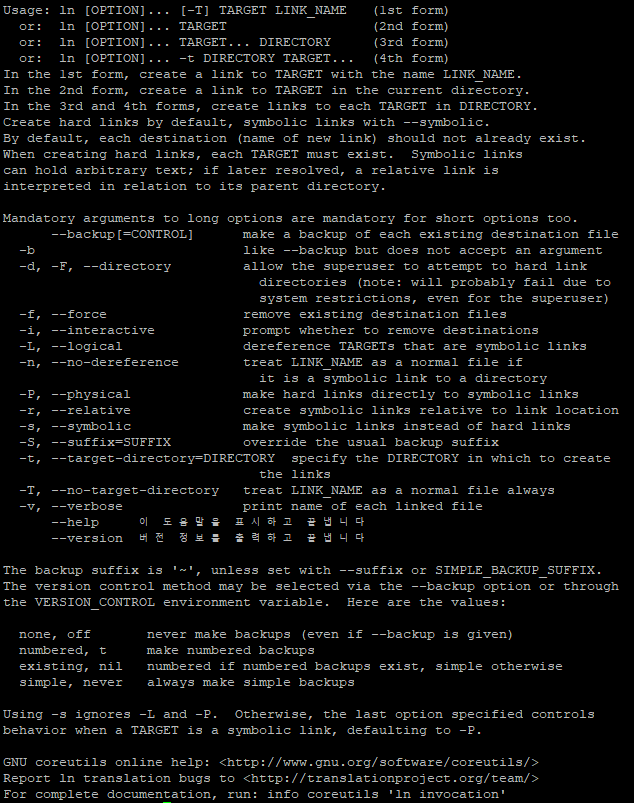 | -b | --backup | 대상 파일이 이미 존재할 경우 백업 파일을 만든 후 링크 파일을 생성 |