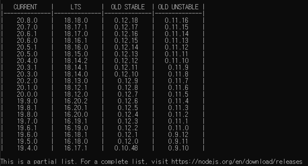 /> nvm list