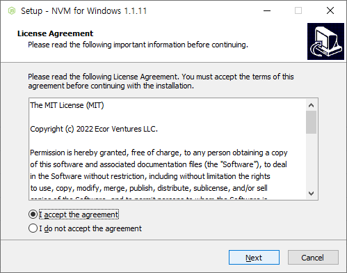저는 이 중에서 nvm-setup.exe 파일을 다운 받아 실행하였습니다.