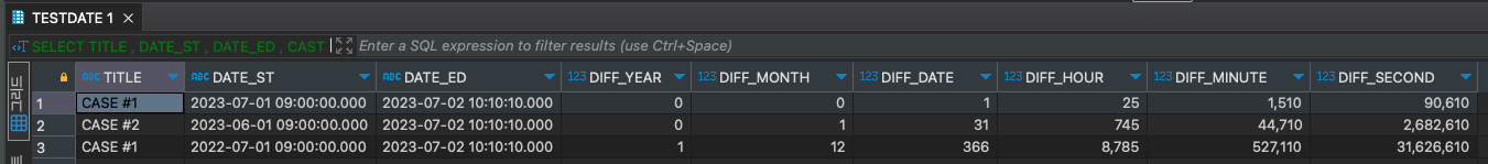 CASE #1 : 시작 일자와 종료 일자가 1일 1시간 10분 10초 차이
