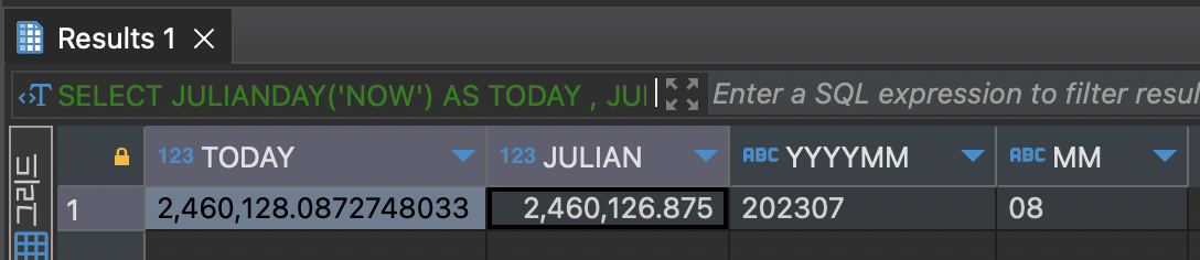 , JULIANDAY('2023-07-01 09:00:00.000') AS JULIAN