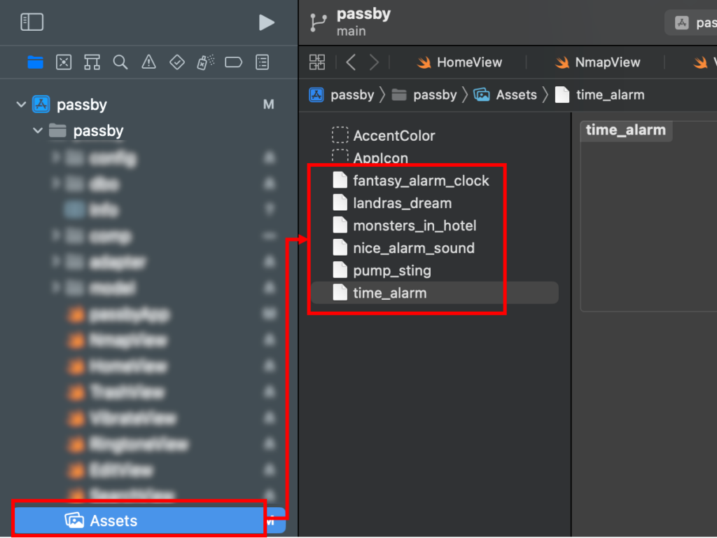 assetName에 내 mp3파일 명(확장자 제외)을 입력해 주고 위와 같이 NSDataSet으로 불러온 후 AVAudioPlayer로 선언합니다.