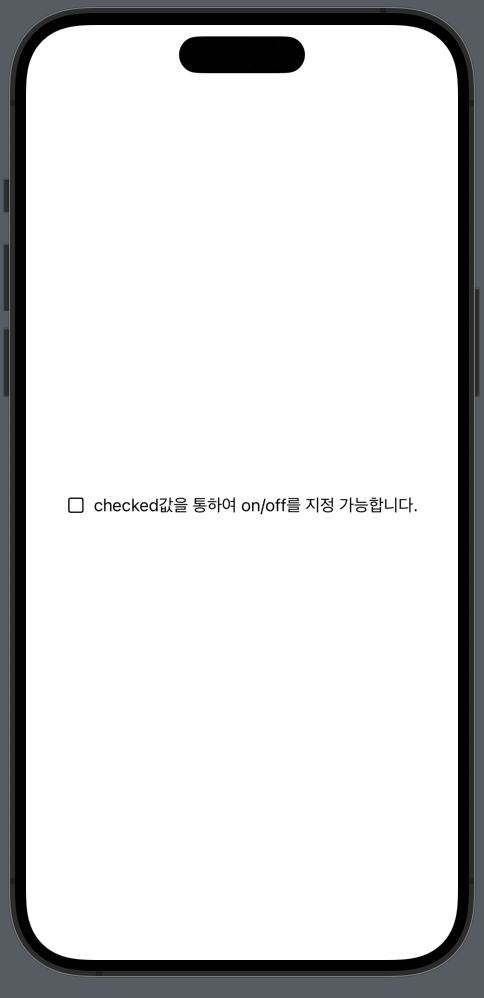 fullwidth로 우측에 스위치가 생성됩니다. iOS에서는 checkbox보다 toggle이라는 개념을 더 많이 활용하는 것 같습니다. (기존 checkboxstyle은 deprecated 되었다는데, 제가 못 찾은 걸 수도 있고요.)