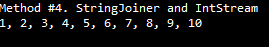 System.out.println("Method #4. StringJoiner and IntStream");