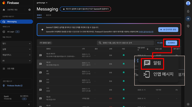 - 해당 버튼을 클릭하면 바로 발송 됨.