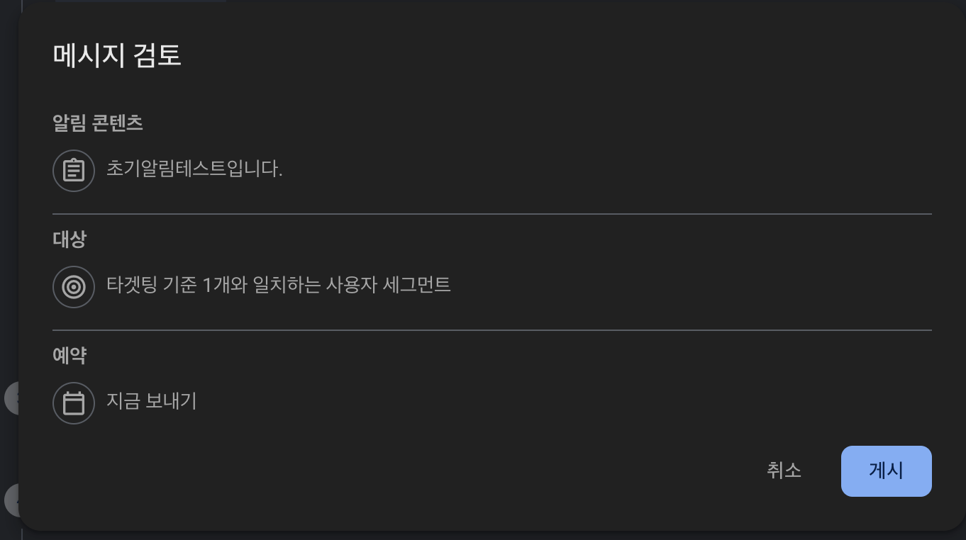 - 단, 발송은 순차적으로 되므로, 사용자가 많으면 알림이 5~10분 정도 뒤에 받을 수도 있음