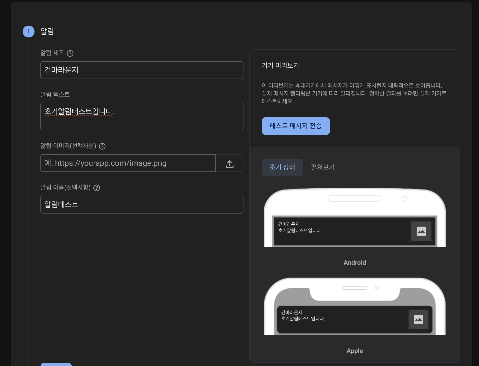 - 필수 항목 : 알림 제목 / 알림 텍스트