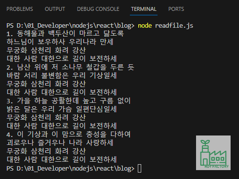 const data = fs.readFileSync("readfile.txt", "utf-8");