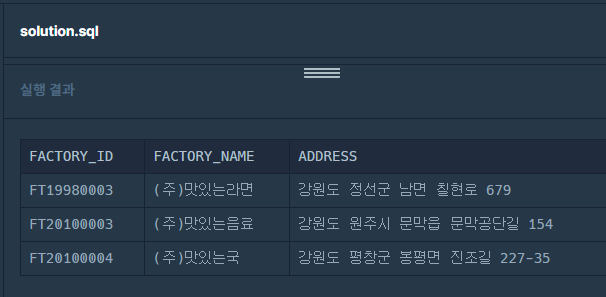 WHERE ADDRESS LIKE '강원도%'