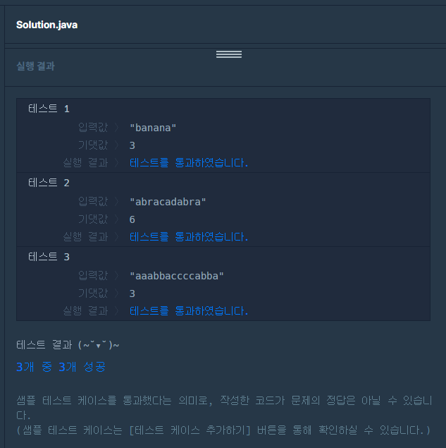 else othCount++; // 시작 문자열과 다른 경우 다른 문자열 개수 +1