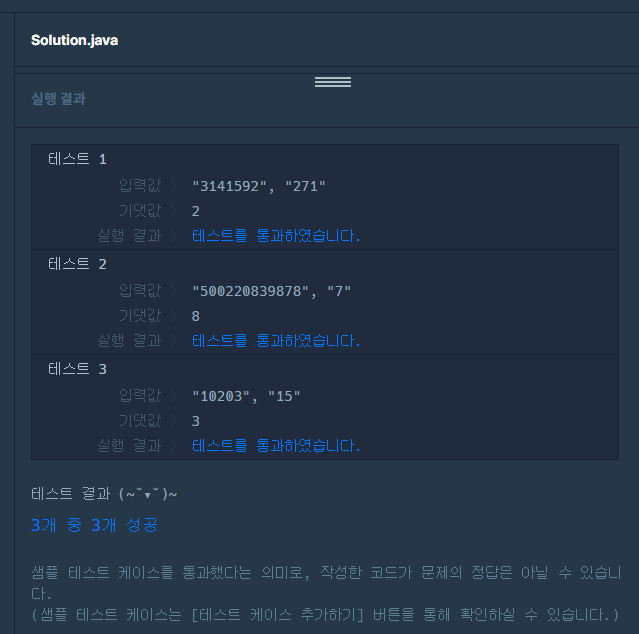 // t에서 나올 수 있는 경우의 수 = (t 문자열 길이) - (p 문자열 길이) + 1