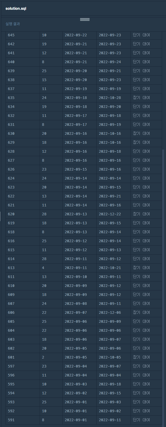 WHEN DATEDIFF(END_DATE, START_DATE) < 29 THEN '단기 대여'