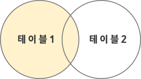 집합 관계 테이블로 표현하면 다음과 같이 테이블1 기준으로 보임을 의미합니다.