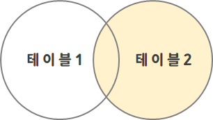 집합 관계 테이블로 표현하면 다음과 같이 테이블2 기준으로 보임을 의미합니다.