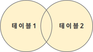 집합 관계 테이블로 표현하면 다음과 같이 테이블1과 테이블2 모두를 기준으로 보임을 의미합니다.