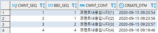3) TB_BOARD_COMMENT의 3번 줄과 BBS_SEQ는 TB_BOARD의 2번 줄의 BBS_SEQ와 일치