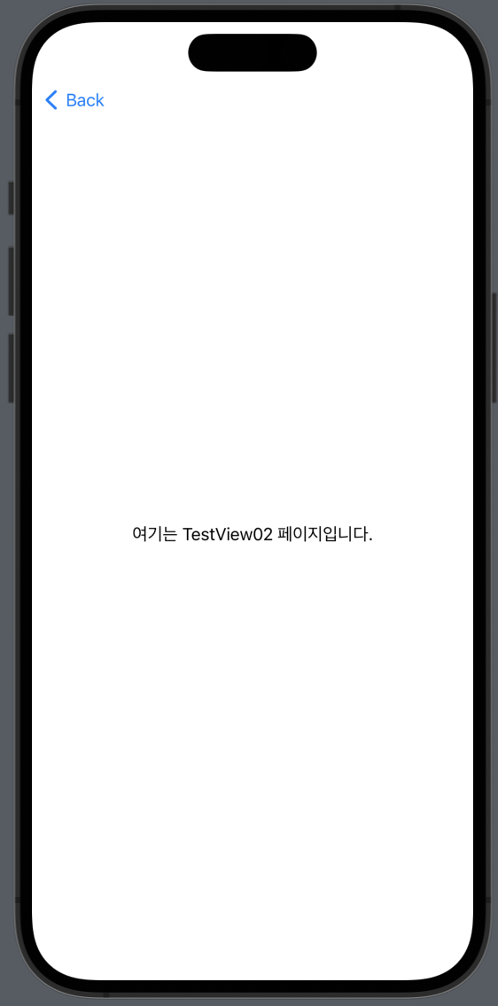 여기서 "Back" 버튼을 클릭 하면 화면은 TestView02에서 TestView로 돌아가게 됩니다.
